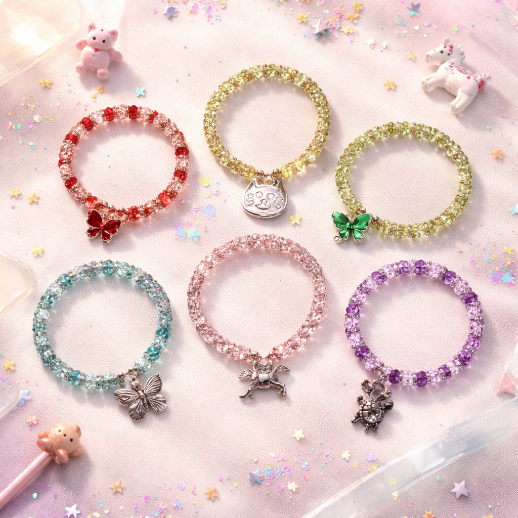 Discover our favorite playful creations—colorful beaded bracelets, rings, keychains, and hair tie beads for kids. Each piece is designed to spark creativity and inspire confidence. Click any image for inspiration or to request your own custom accessory!