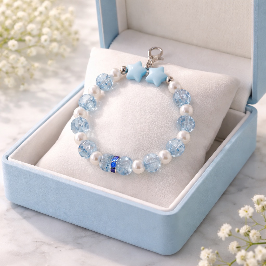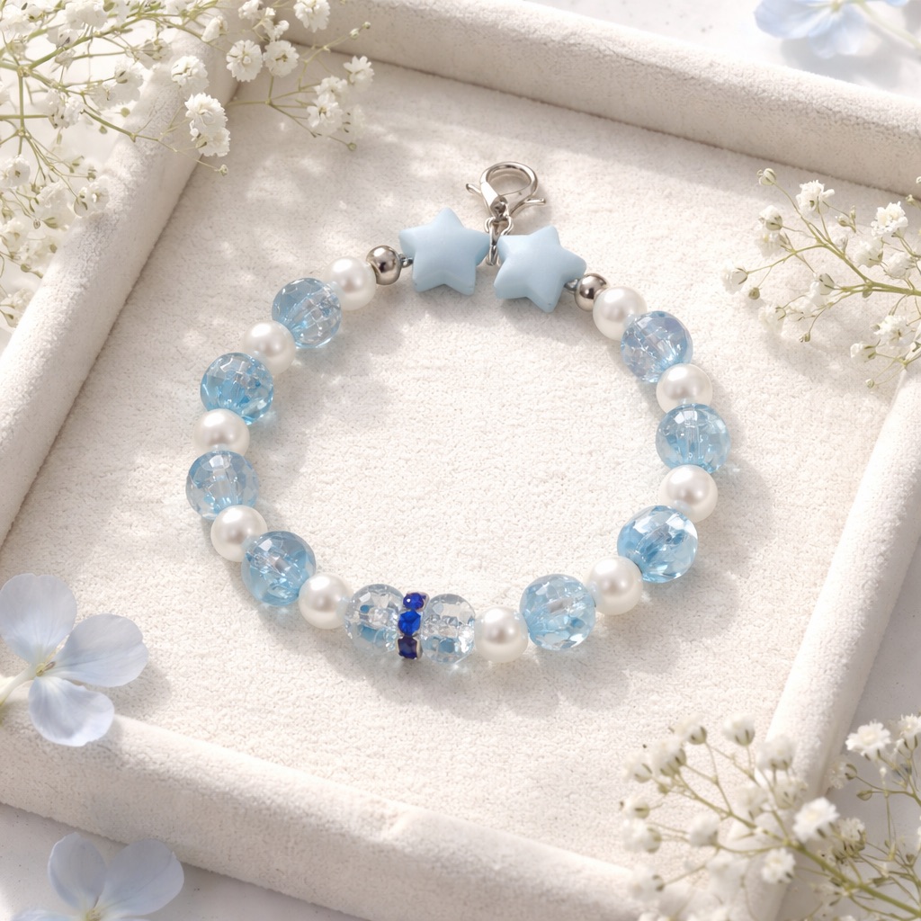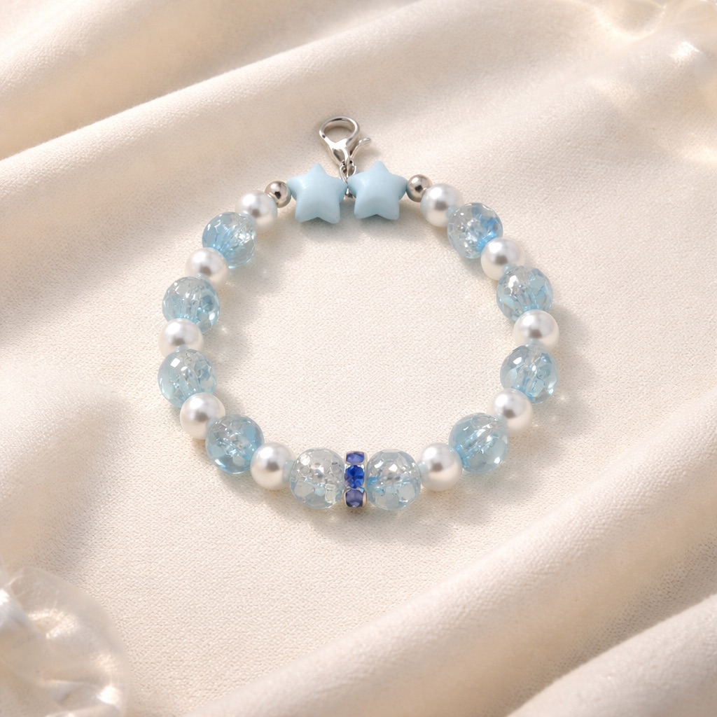 Cool, crisp, and sparkling like winter magic 💎 The Blue Frost Pop Keychain features icy blue crackle beads mixed with glossy pearls and a soft pastel star accent. It’s the perfect pop of shimmer for backpacks, lunch bags, or dance totes.