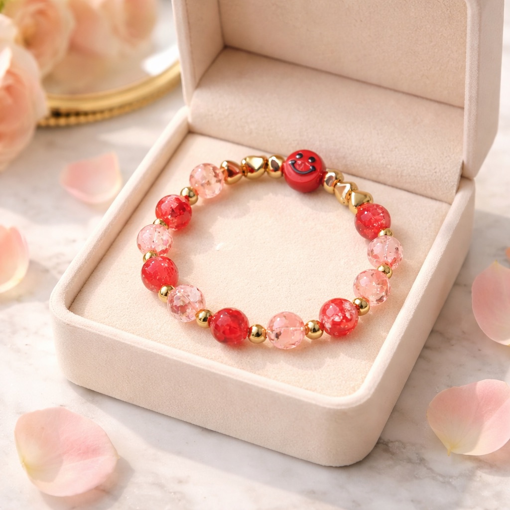 Bright coral-red beads and a cheerful red smiley make the Cherry Cheer Bracelet a bold and happy statement. Designed for minis with big hearts and big smiles, this bracelet adds instant confidence to any look. Fun, vibrant, and full of sparkle.