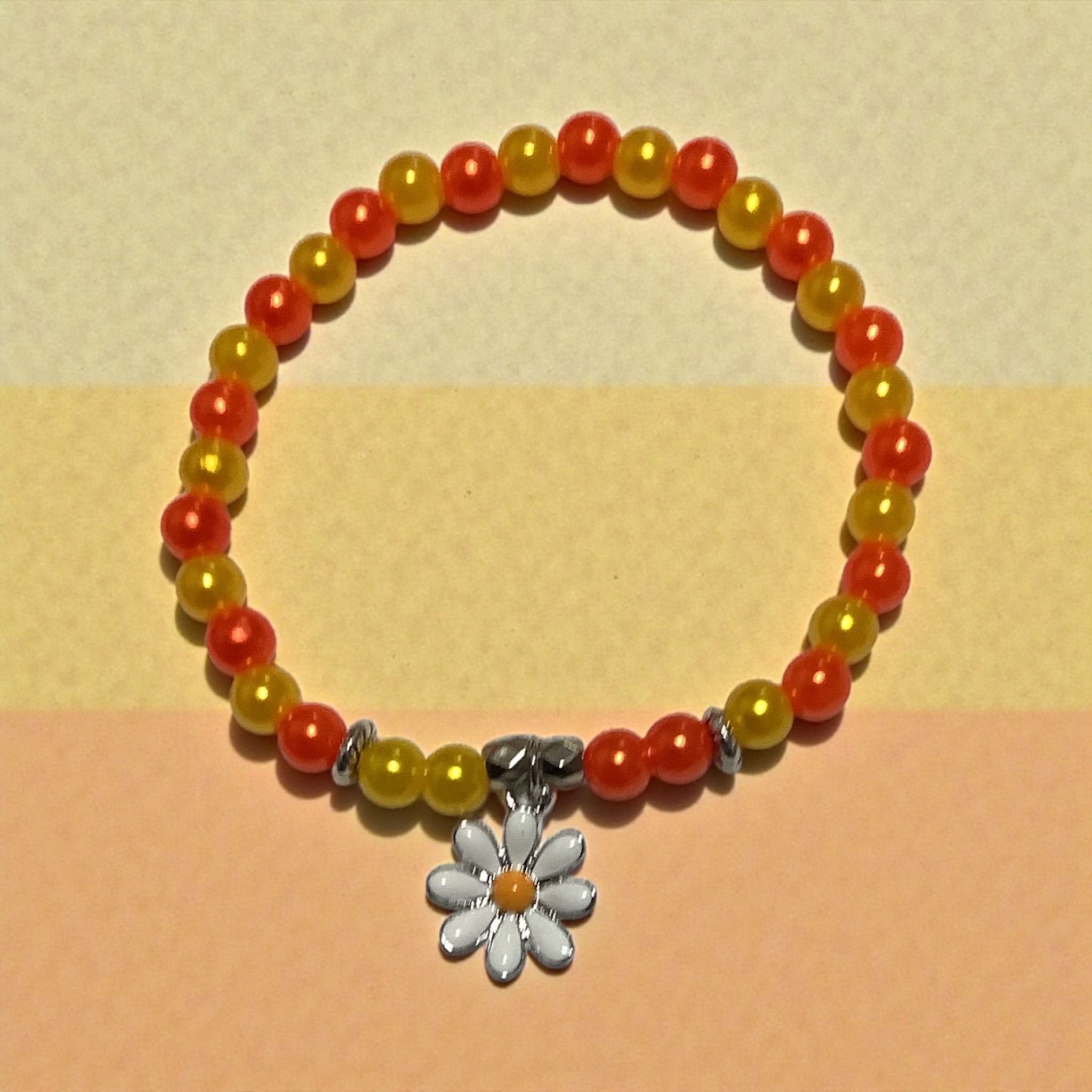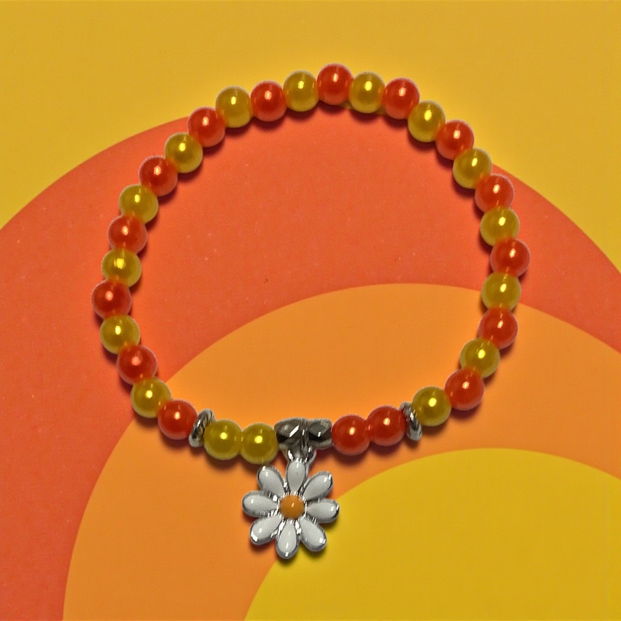 Bright as a summer afternoon ☀️ The Marigold Sunshine Pop Bracelet mixes glowing yellow and warm orange beads with a cheerful daisy charm for the ultimate sunshine vibe.