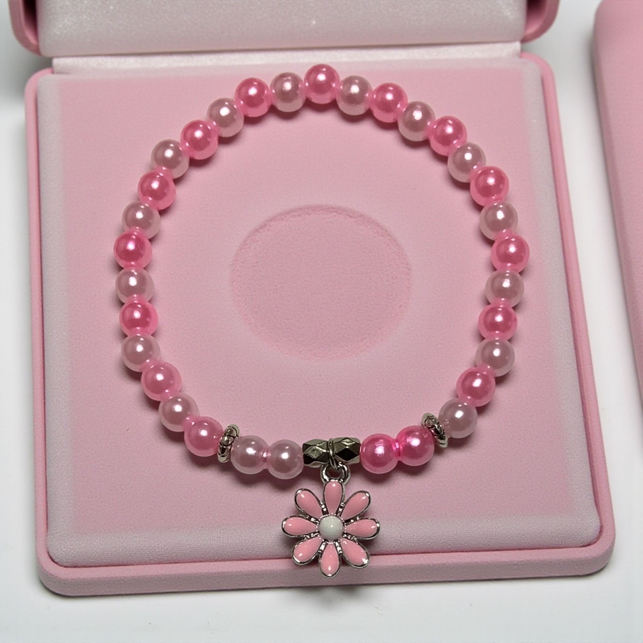Soft, sweet, and full of sunshine 🌷 The Pink Petunia Dream Bracelet features gentle blush and pearl tones with a charming daisy pendant that feels like a garden fairytale. Perfect for spring days, tea parties, and little dreamers who love all things pink and pretty.